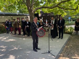 On 15th August the nation commemorated the 80th anniversary of VJ Day (Victory over Japan) which marked the end of WWII. In Dorchester the occasion was marked by Dorset Council with a ceremony held at the Memorial Area outside County Hall. Those attending were welcomed by the Chair of Dorset Council, Cllr Stella Jones, and the Master of Ceremonies was Grant Parrott, a past County Chairman of the Royal British Legion. During the ceremony the Bovington Military Wives Choir performed a number of songs and local military history writer Christopher Jary gave a fascinating, and moving, account of the Dorset Regiment’s significant role in the Burma Campaign during WWII. As you will hear, several descendants of military personnel from that campaign were in attendance at this service. The minister at the ceremony was John Yarrien, Superintendent Minister from the Dorset South and West Methodist Church…